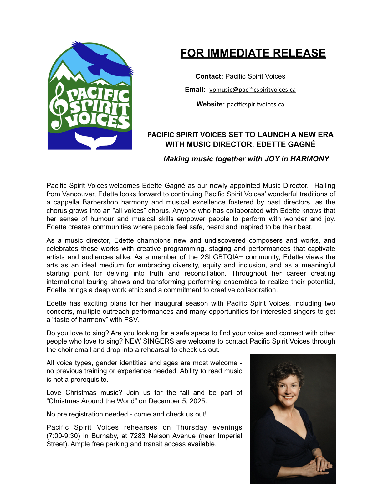 Visit a rehearsal: membership@pacificspiritvoices.ca